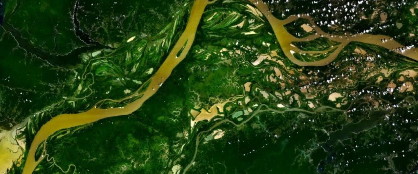 Imagen: río Amazonas a través de la selva, fotografiado por la NASA. Fuente: Wikipedia.